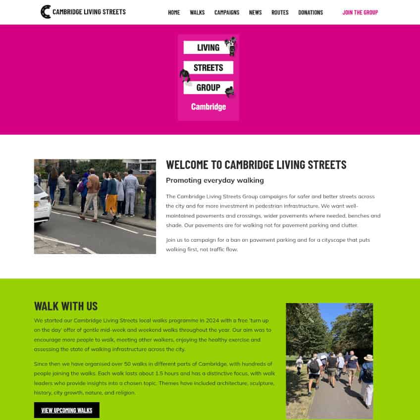 We are delighted to be able to help promote walking in Cambridge with an updated website for Cambridge Living Streets. The Cambridge Living Streets Group campaigns for safer and better streets across the city and for more investment in pedestrian infrastructure.